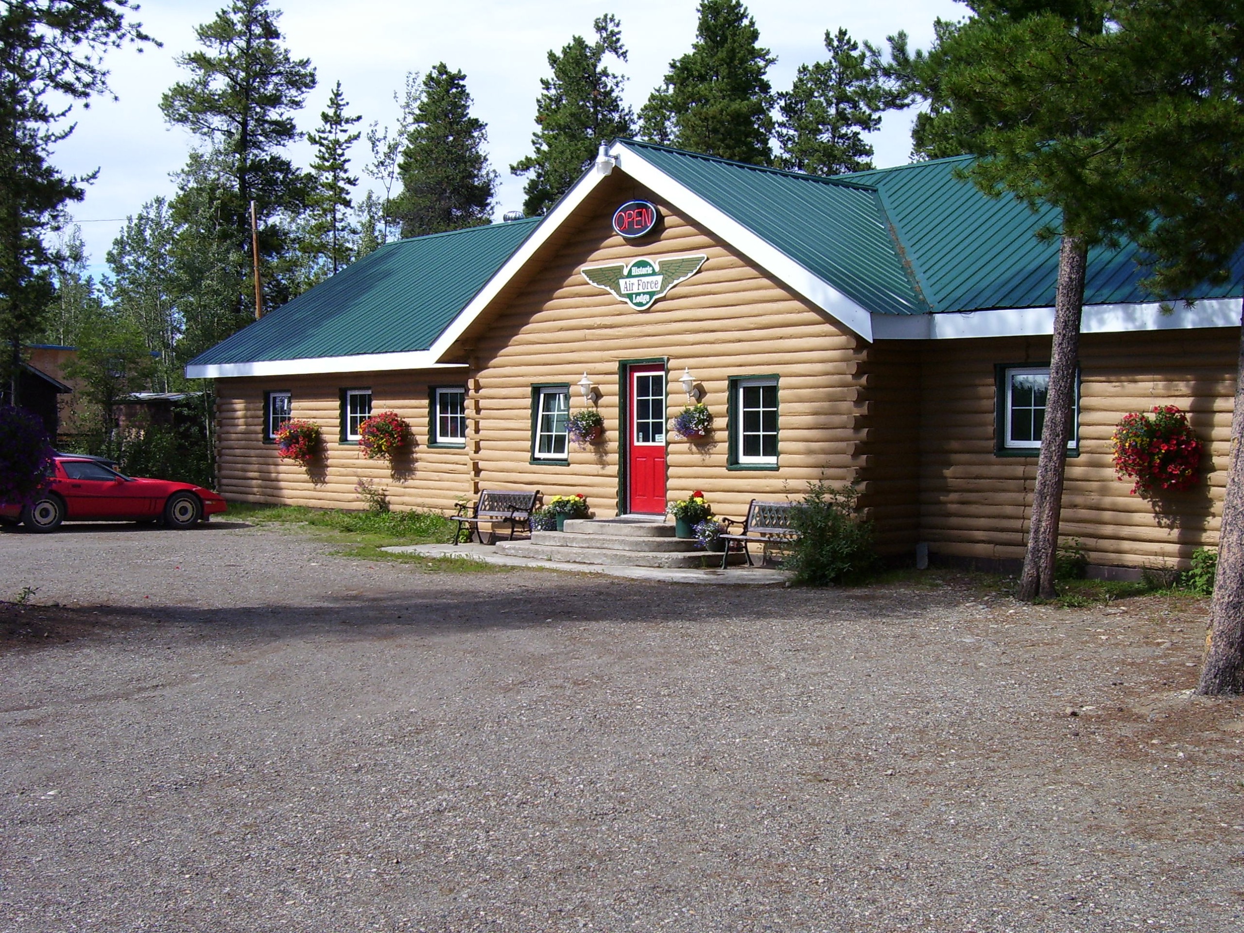 The Historic Air Force Lodge is the oldest building in the small northern community of Watson Lake, Yukon. It is a heritage structure that has quickly become one of the most attractive and affordable stops along the Alaska Highway. Originally built at the Watson Lake Airport 1942 as a barracks for the pilots flying during Second World War, it was later moved to the town where it stood empty for many years. Then in 1998 the present owner completely and thoroughly refurbished the interior while leaving the exterior structure in its original form. Over the period of two and a half years of pains taking and meticulous craftsmanship the interior became a visitor’s lodge still very true to its wartime functional purpose of barracks, but with many modern features that surpass the highest building standards. The Air Force Lodge is completely non smoking and very clean.